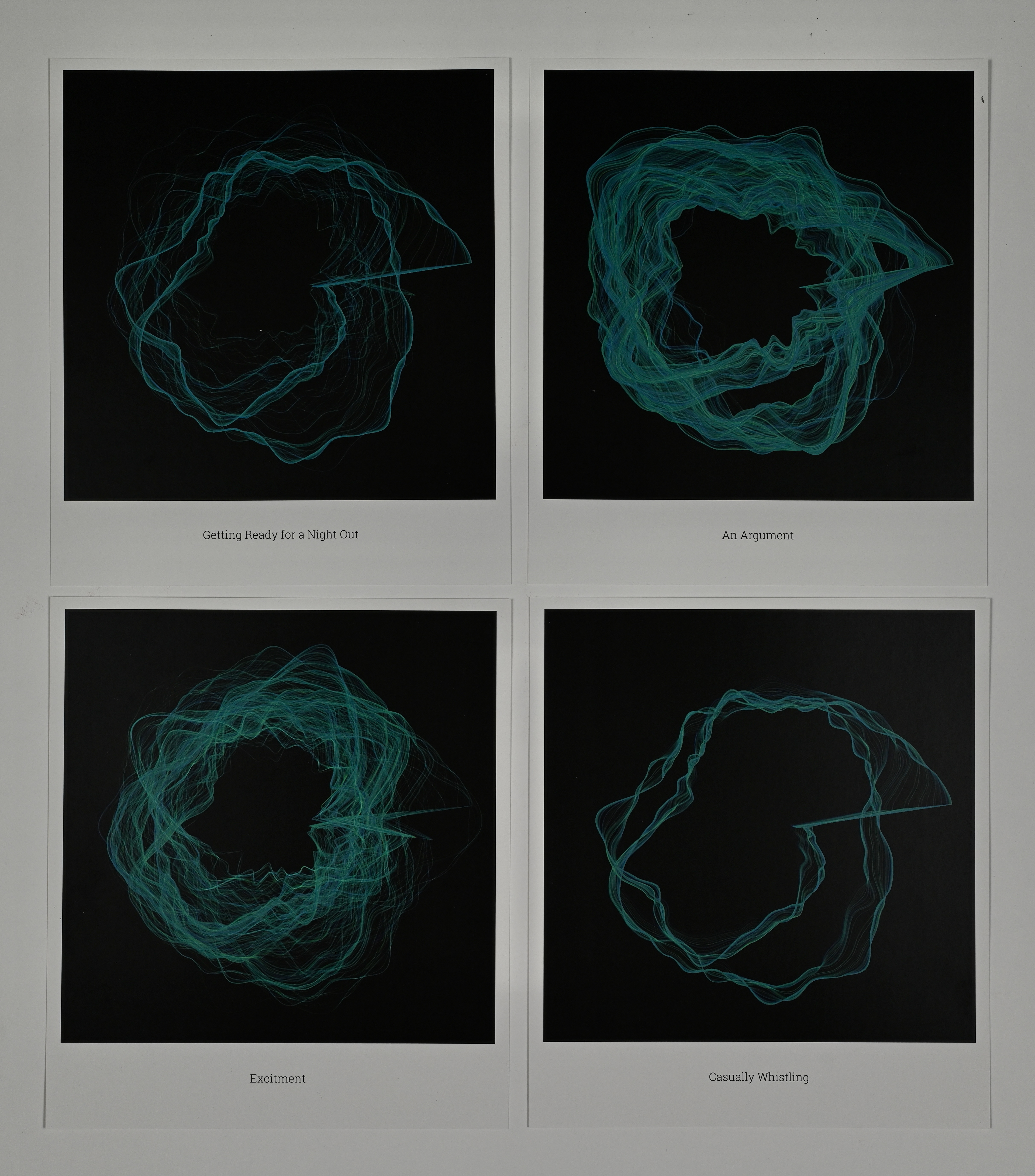 This project’s objective was to visualise audio between two ends using patterns. Using the P5.JS library I coded to create patterns that react to audio. This code can be used to visualise audio between two ends. These ends can be a conversation, a short journey between two points, expressing emotions, a song and so on. Using the code, I created three outcomes in which the audience can interact with themselves. Followed by a series of posters which show the patterns I created using audio from different scenarios.